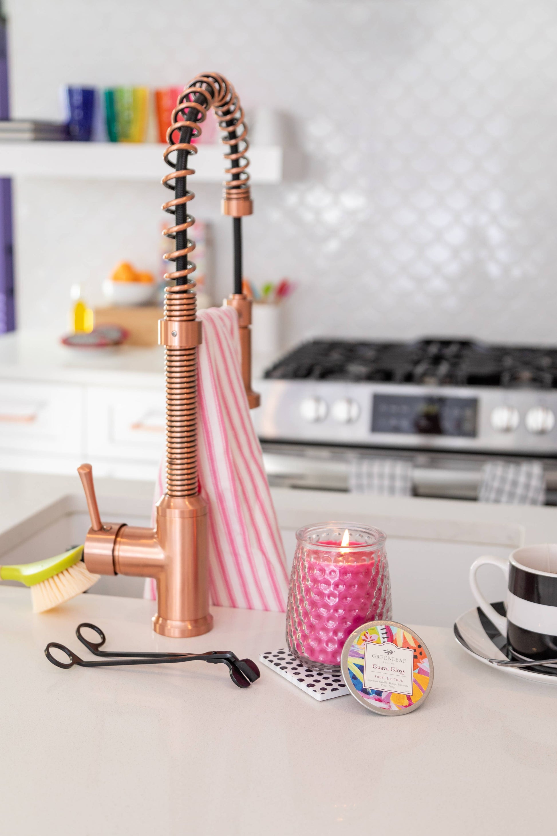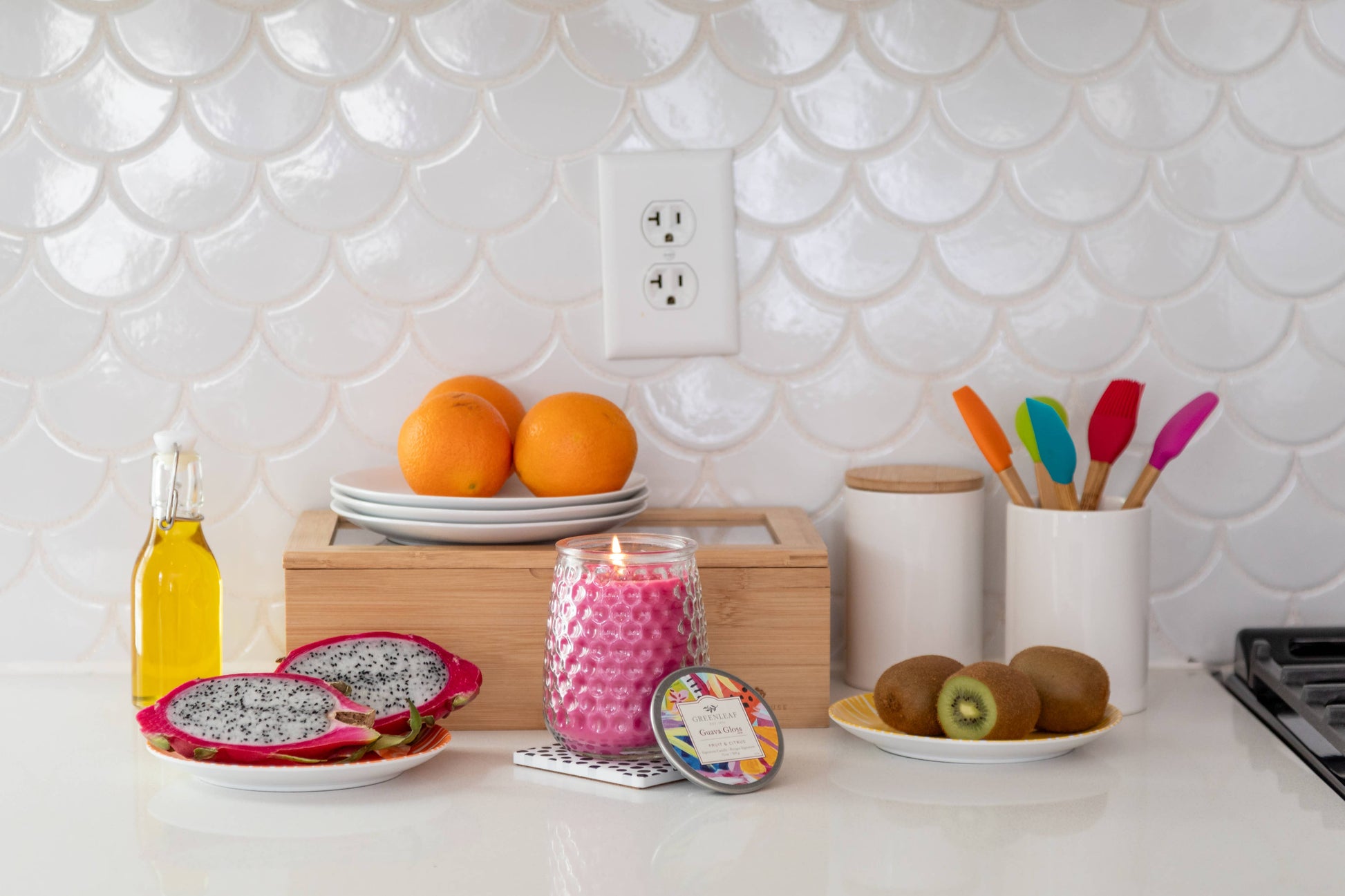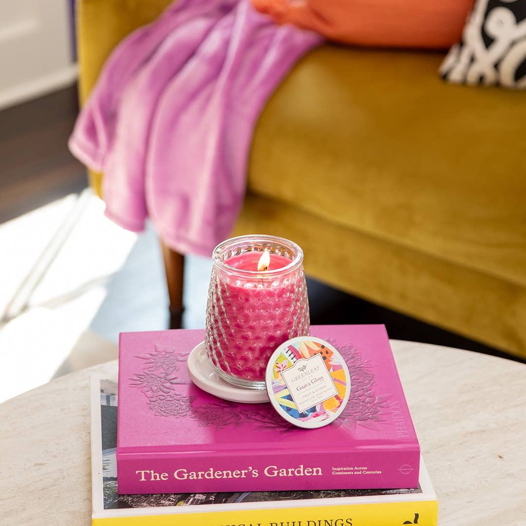 With a clear, glass hobnail textured jar and a silver lid, our Signature Candle is the perfect match for any style. Fill your home with inviting Greenleaf fragrances that make any space feel cozy!