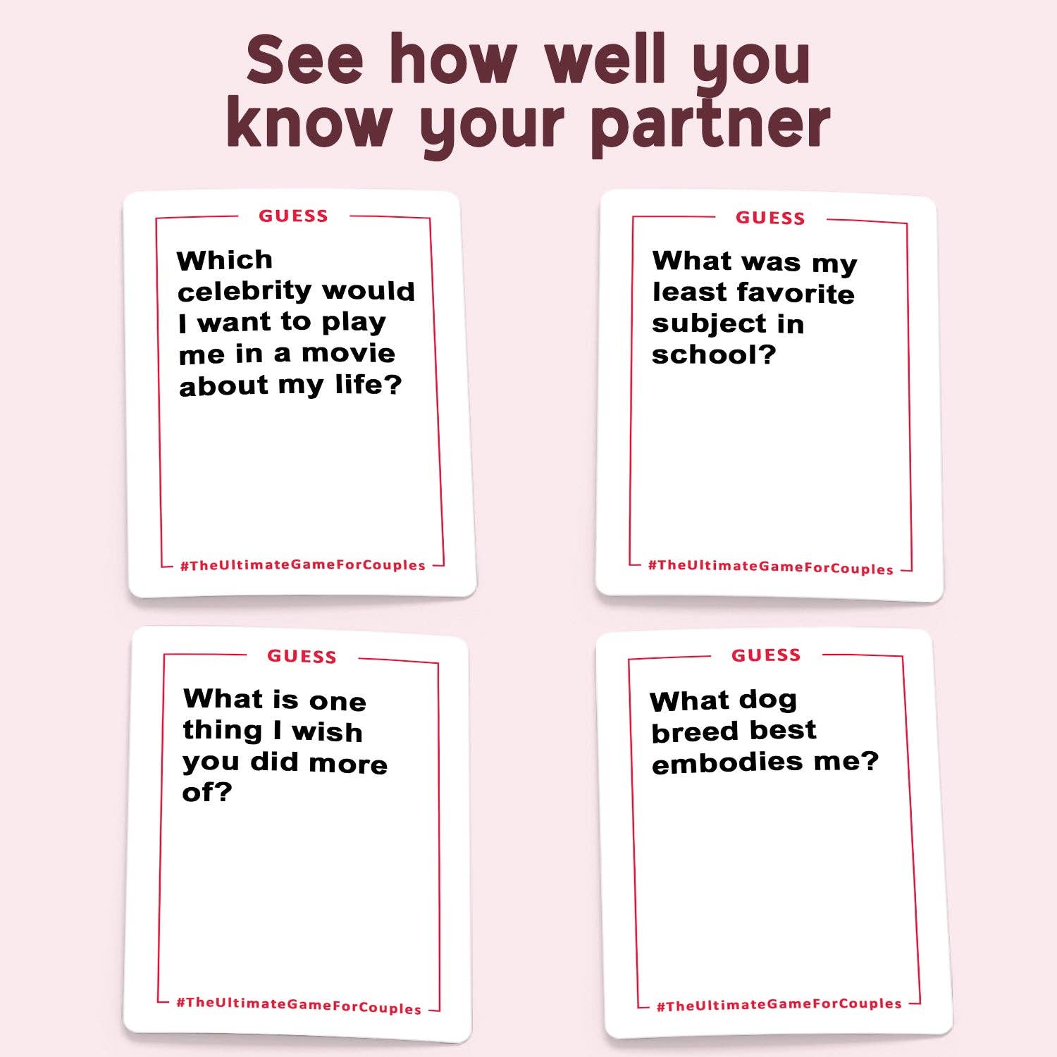 * Spend quality time with each other or even play this as a group, teaming up together against other couples to see who knows each other best.