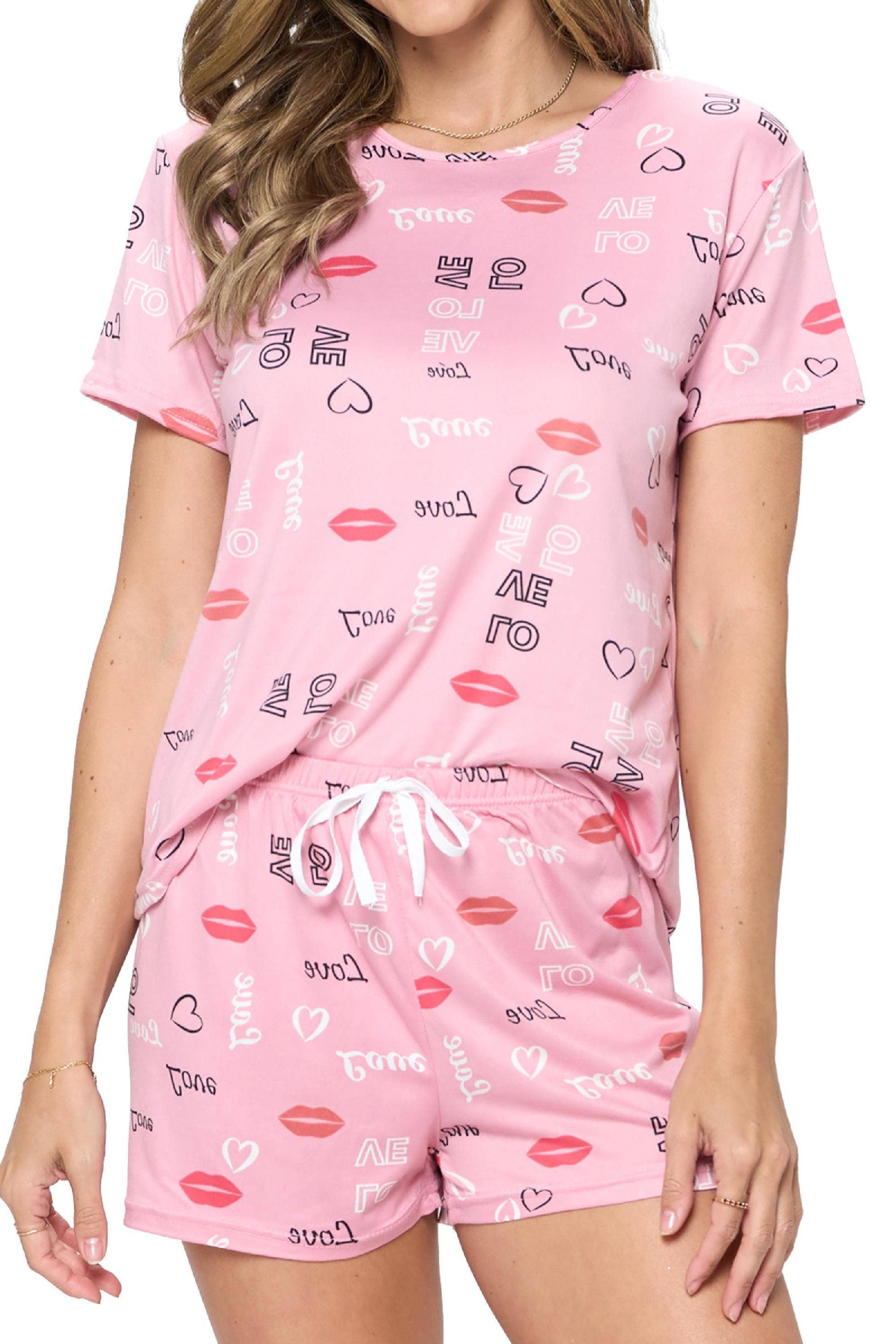 These T shirt and shorts are great as pajama sets, sleep set, sleepwear, loungewear around the house, pajamas party, or travel lounge wear. They make the perfect Valentine’s gift!